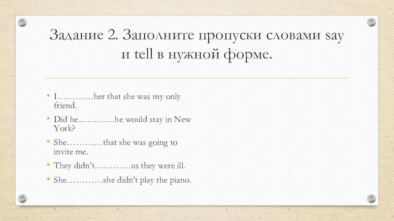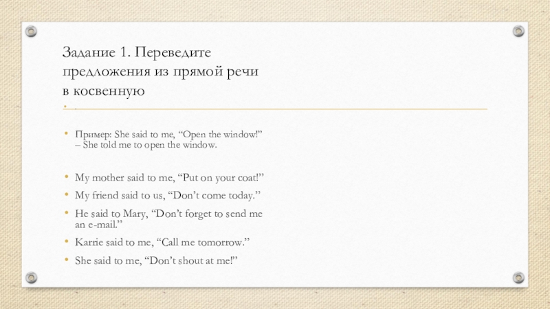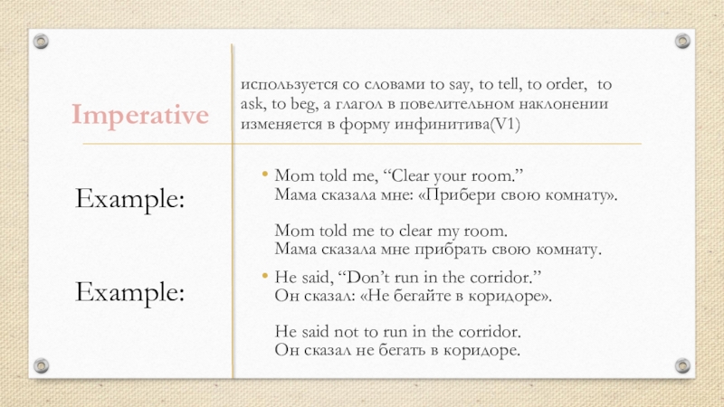 используется со словами to say, to tell, to order, to ask, to beg, а глагол в повелительном наклонении изменяется в форму инфинитива(V1)