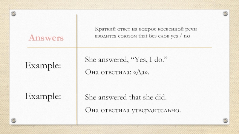 Краткий ответ на вопрос косвенной речи вводится союзом that без слов yes / no