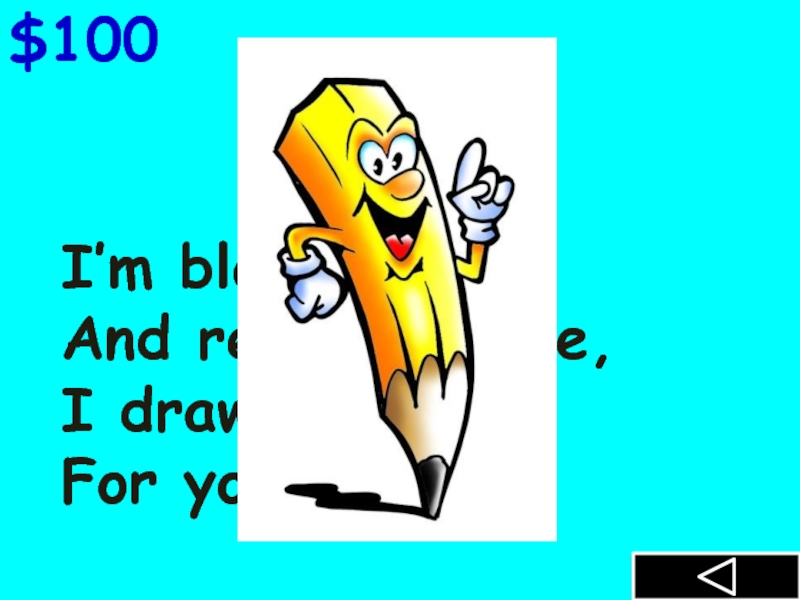 I’m blackAnd red, and blue,I draw a pictureFor you. $100