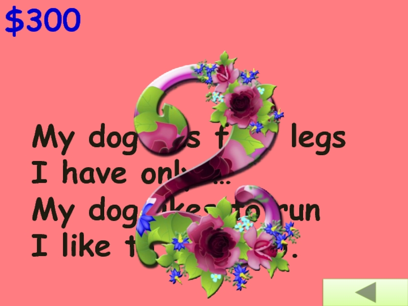 My dog has four legsI have only …My dog likes to runI like to run, too.$300