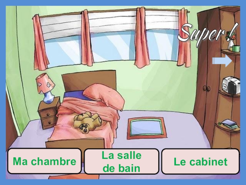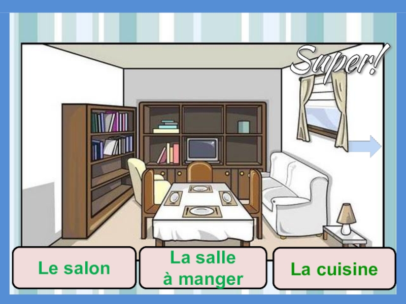 La salle à mangerLa salle de bainLa chambre à coucherSuper !