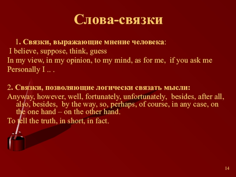 Слайд 14Слова-связки