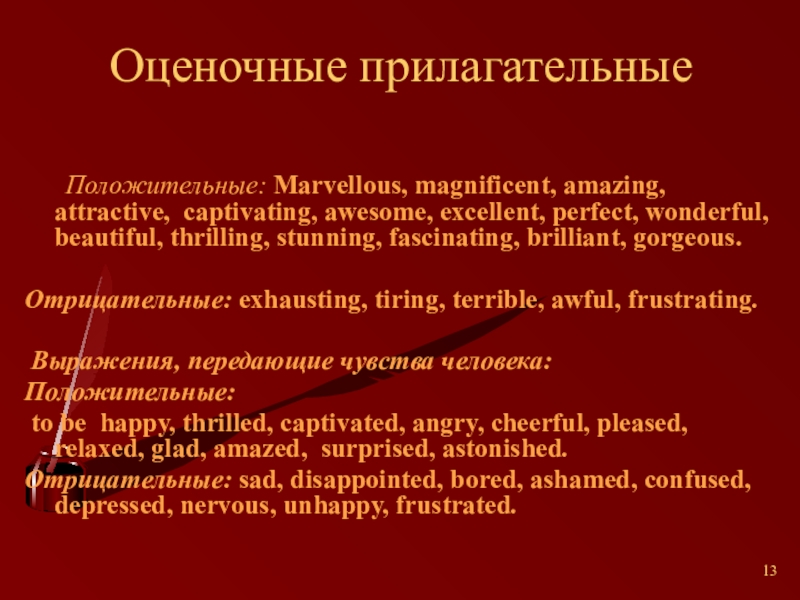 Слайд 13Оценочные прилагательные