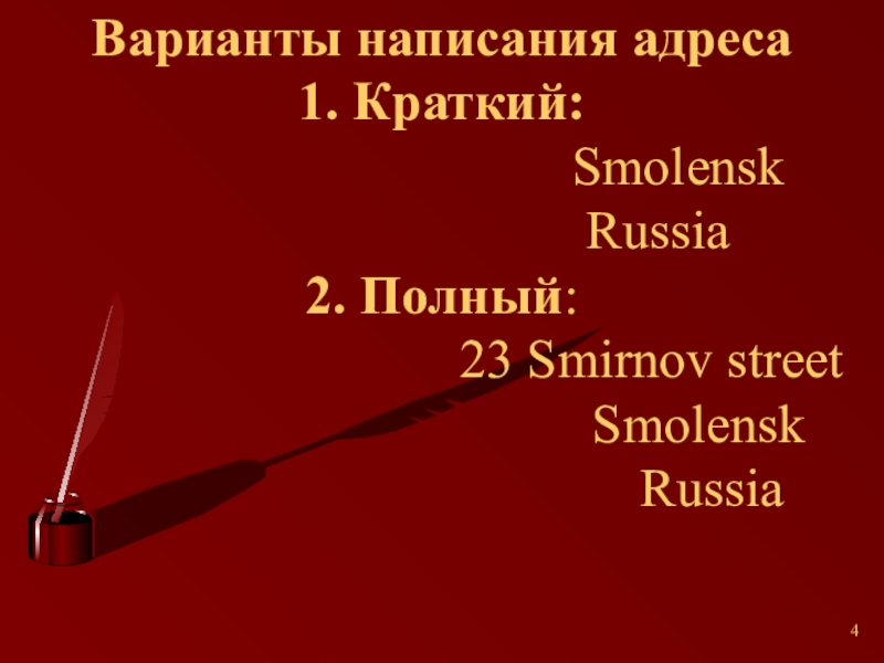 Слайд 4Варианты написания адреса