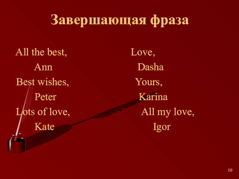 Слайд 10Завершающая фраза