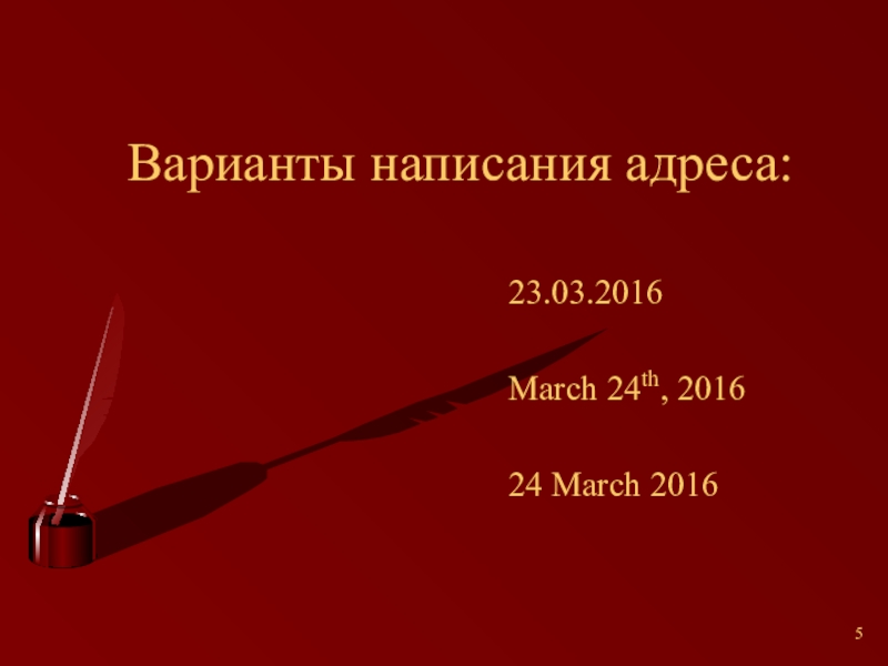 Слайд 5Варианты написания адреса: