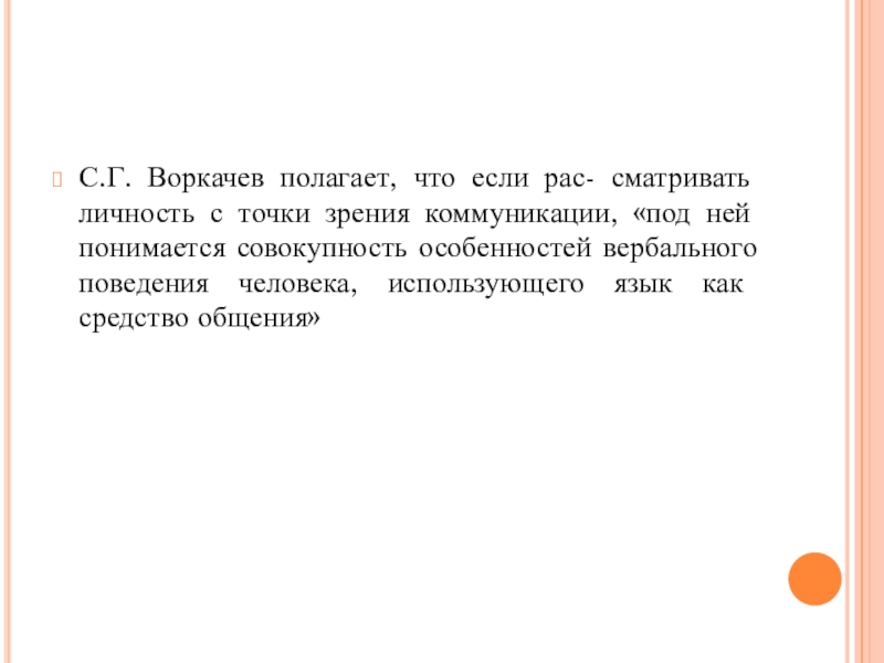 Слайд 10С.Г. Воркачев полагает, что если рас- сматривать личность с точки зрения