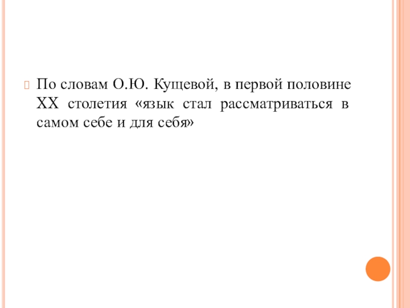 Слайд 5По словам О.Ю. Кущевой, в первой половине XX столетия «язык стал
