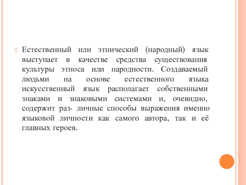 Слайд 8Естественный или этнический (народный) язык выступает в качестве средства существования культуры
