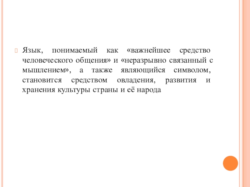 Слайд 7Язык, понимаемый как «важнейшее средство человеческого общения» и «неразрывно связанный с
