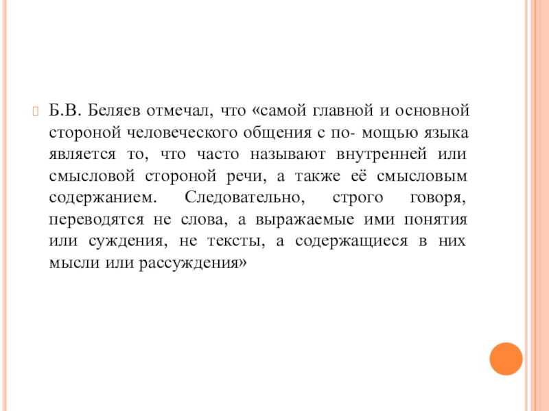 Слайд 9Б.В. Беляев отмечал, что «самой главной и основной стороной человеческого общения