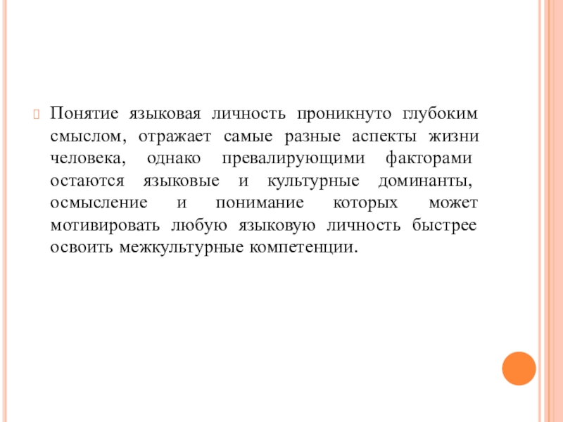 Слайд 18Понятие языковая личность проникнуто глубоким смыслом, отражает самые разные аспекты жизни