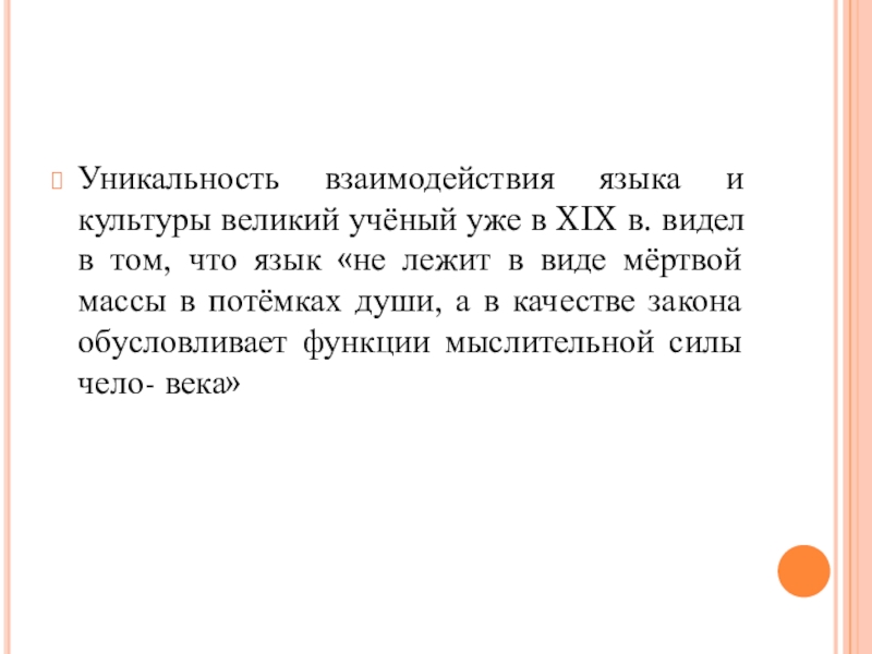 Слайд 4Уникальность взаимодействия языка и культуры великий учёный уже в XIX в.