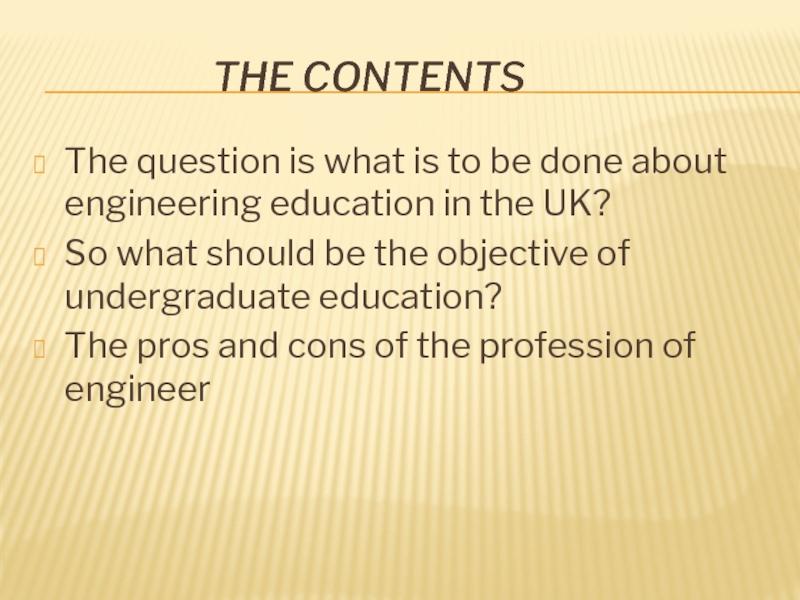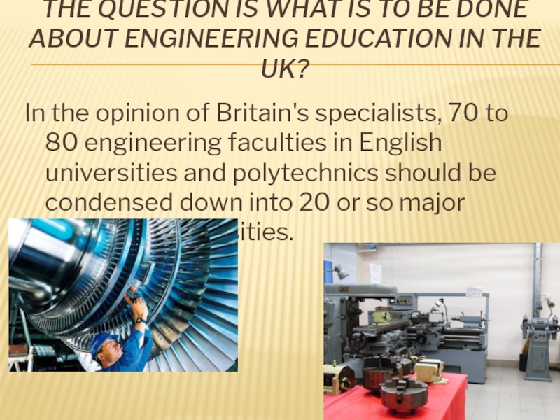In the opinion of Britain's specialists, 70 to 80 engineering faculties in English universities and polytechnics should be condensed down into 20 or so major technical universities.