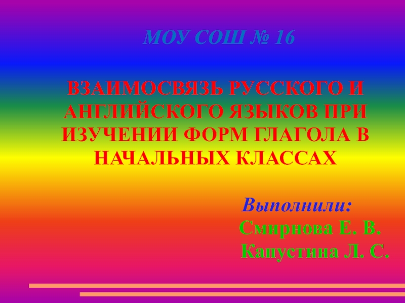 ВЗАИМОСВЯЗЬ РУССКОГО И АНГЛИЙСКОГО ЯЗЫКОВ ПРИ ИЗУЧЕНИИ ФОРМ ГЛАГОЛА В НАЧАЛЬНЫХ КЛАССАХ