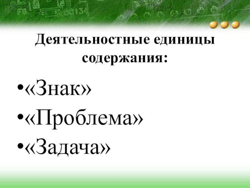 Деятельностные единицы содержания:«Знак»«Проблема»«Задача»