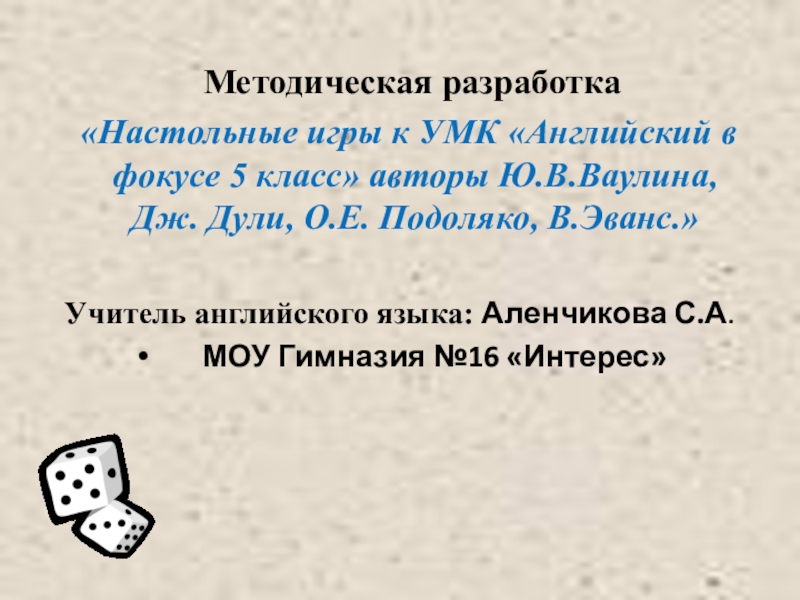 Учитель английского языка: Аленчикова С.А.