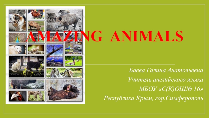 AMAZING ANIMALSБаева Галина АнатольевнаУчитель английского языкаМБОУ «С(К)ОШ№ 16»Республика Крым, гор.Симферополь