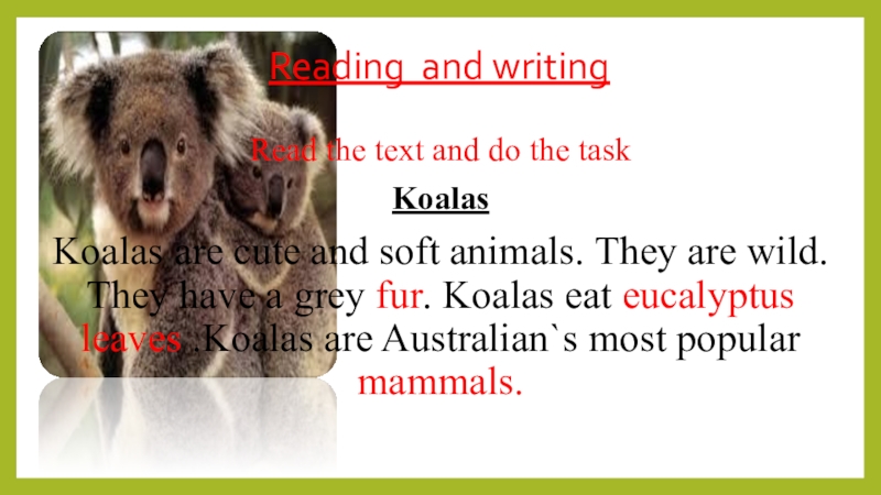 Reading and writingRead the text and do the taskKoalasKoalas are cute and soft animals. They are wild.