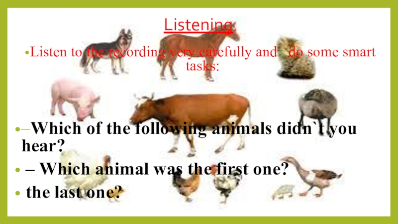 ListeningListen to the recording very carefully and  do some smart tasks:–Which of the following animals didn`t