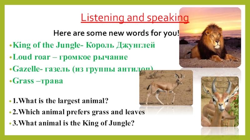 Listening and speaking Here are some new words for you!King of the Jungle- Король Джунглей Loud roar