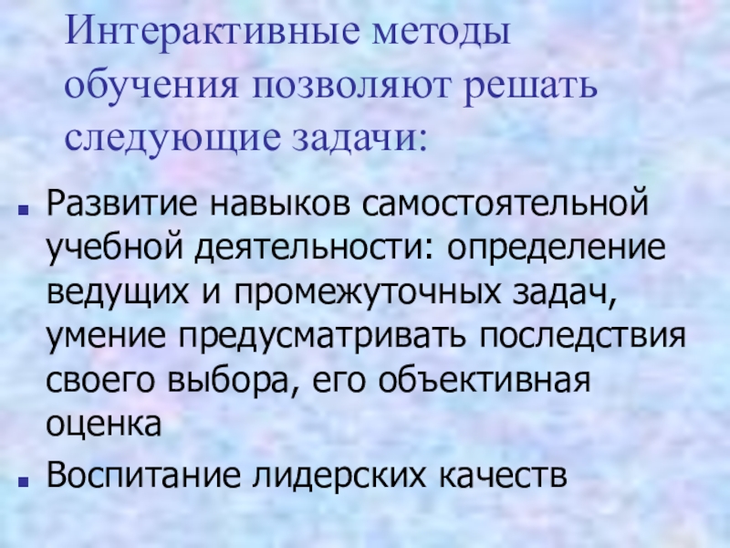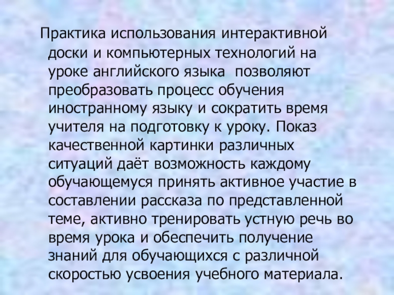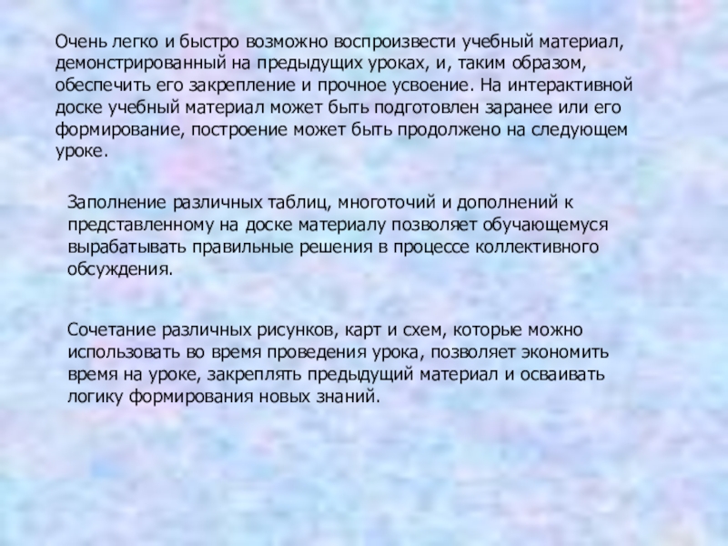 Заполнение различных таблиц, многоточий и дополнений к представленному на доске материалу позволяет обучающемуся вырабатывать правильные решения в процессе коллективного обсуждения.