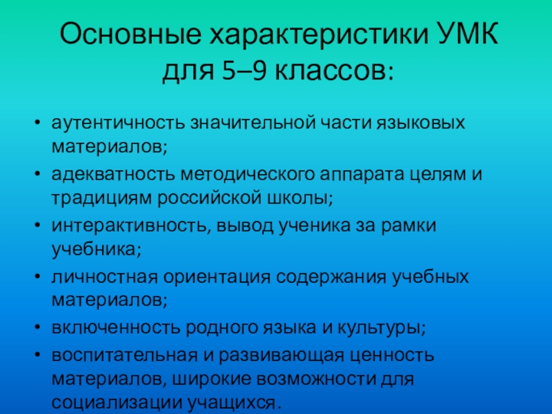 Слайд 11Основные характеристики УМК для 5–9 классов: