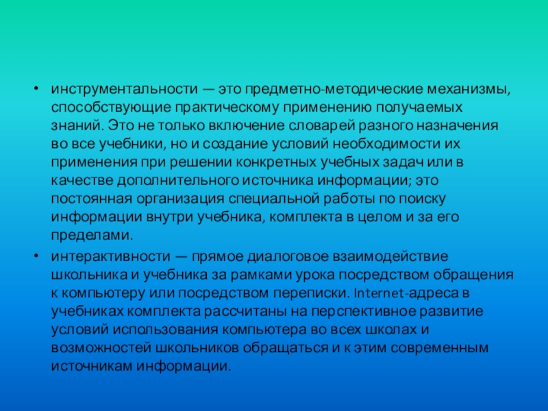 Слайд 6инструментальности — это предметно-методические механизмы, способствующие практическому применению получаемых знаний. Это