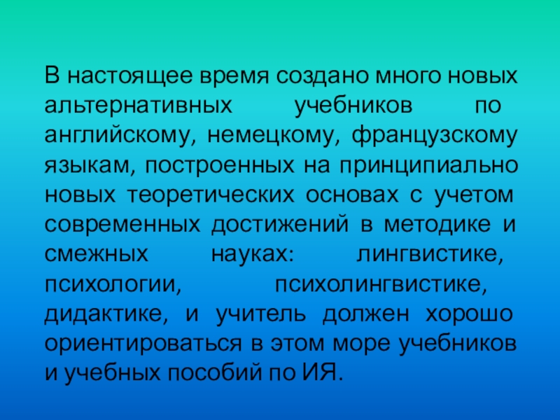 Слайд 8В настоящее время создано много новых альтернативных учебников по английскому, немецкому,