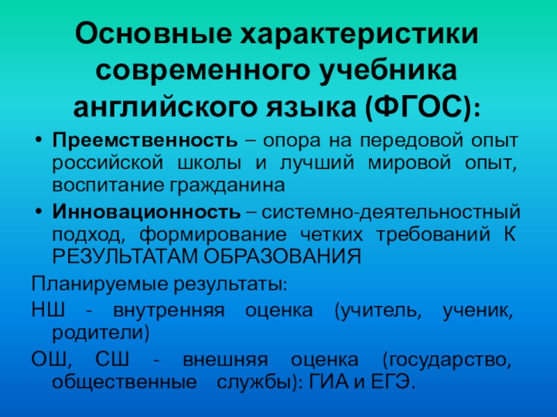 Слайд 3Основные характеристики современного учебника английского языка (ФГОС):