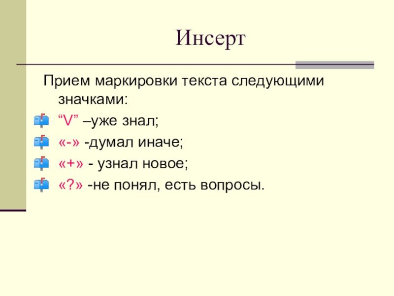 В колонку « Узнали» учащиеся записывают всё, что они почерпнули из текста, располагая ответы параллельно соответствующим вопросам из второй колонки.