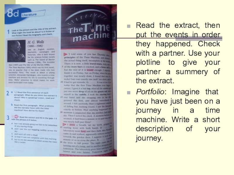 Check with a partner. Use your plotline to give your partner a summery of the extract.