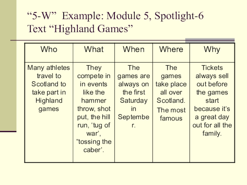 Слайд 17“5-W” Example: Module 5, Spotlight-6
