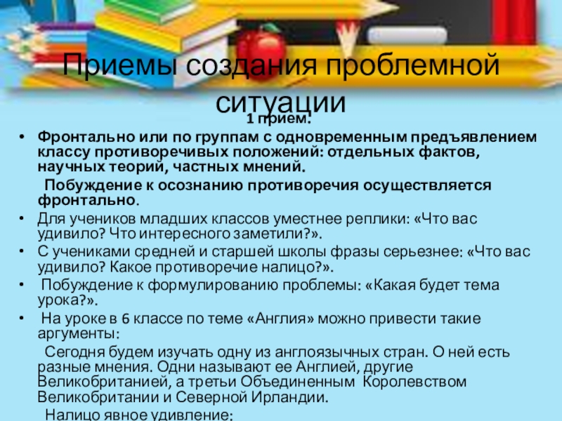 Проблемная ситуация создается в два шага. Первым шагом фронтально