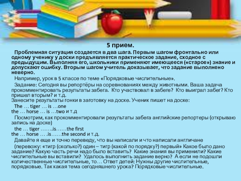 Например, урок в 5 классе по теме «Порядковые числительные».