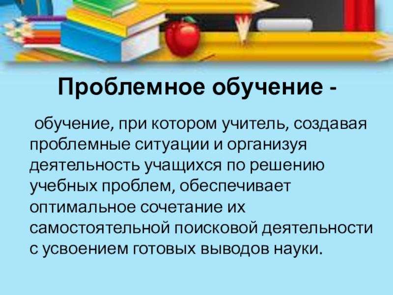 Проблемное обучение - это обучение, при котором педагог ставит перед учениками