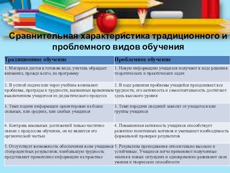 Слайд 8Сравнительная характеристика традиционного и проблемного видов обучения