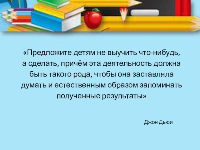 Ребёнок гораздо легче и прочнее усваивает знания, которые он получил сам в ходе практической деятельности под руководством учителя.