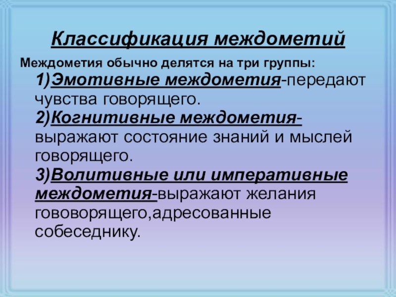 Классификация междометий