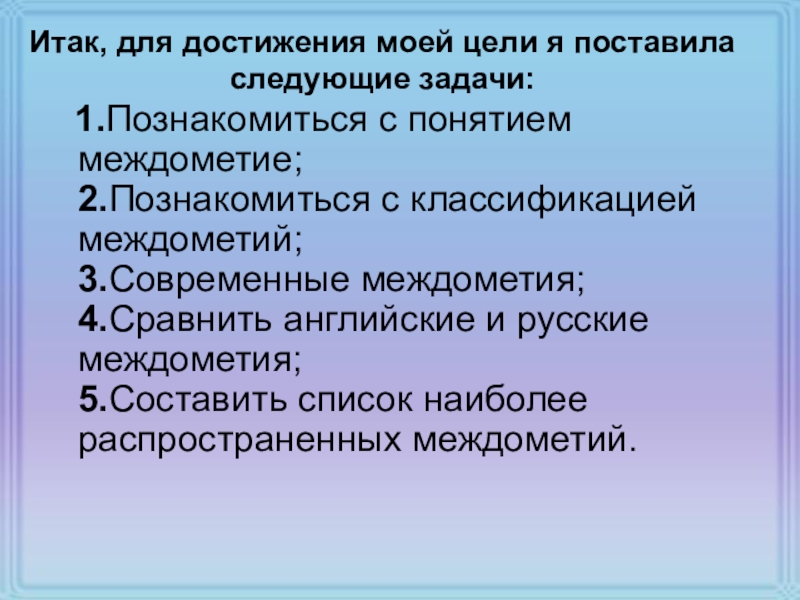 Итак, для достижения моей цели я поставила следующие задачи: