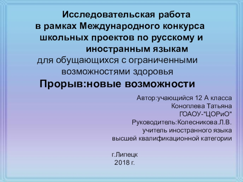 Руководитель:Колесникова.Л.В.