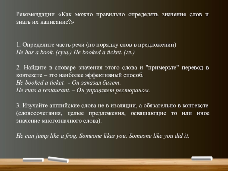 4. разработать практические рекомендации для правильного определения значений английских слов;