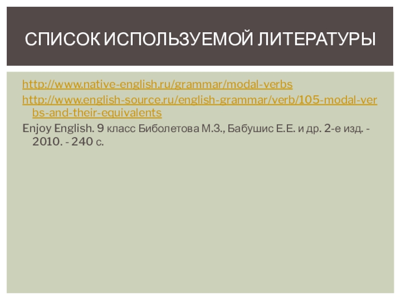 СПИСОК ИСПОЛЬЗУЕМОЙ ЛИТЕРАТУРЫ