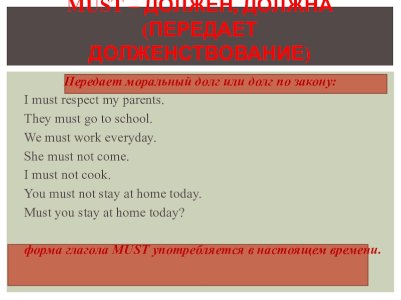 MUST – ДОЛЖЕН, ДОЛЖНА