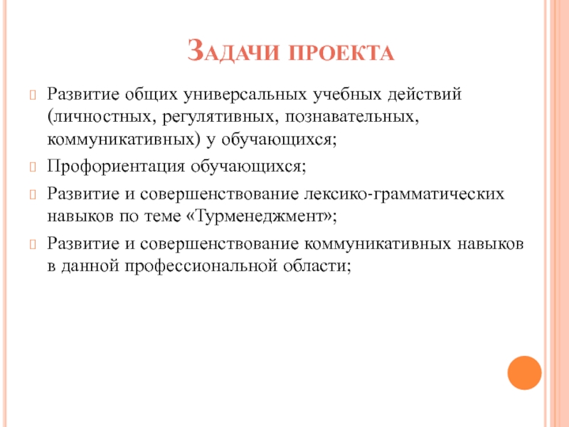 Развитие и совершенствование лексико-грамматических навыков по теме «Турменеджмент»;