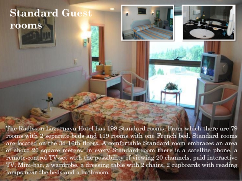 Слайд 25The Radisson Lazurnaya Hotel has 198 Standard rooms. From which there