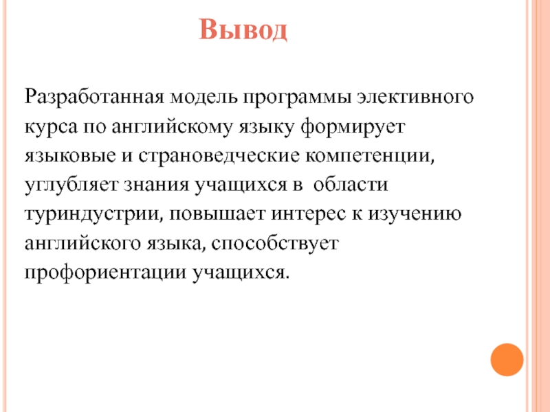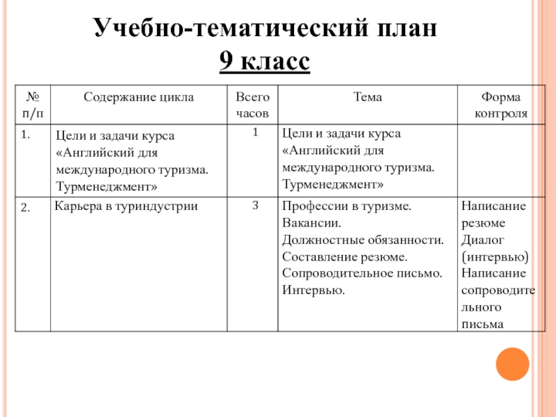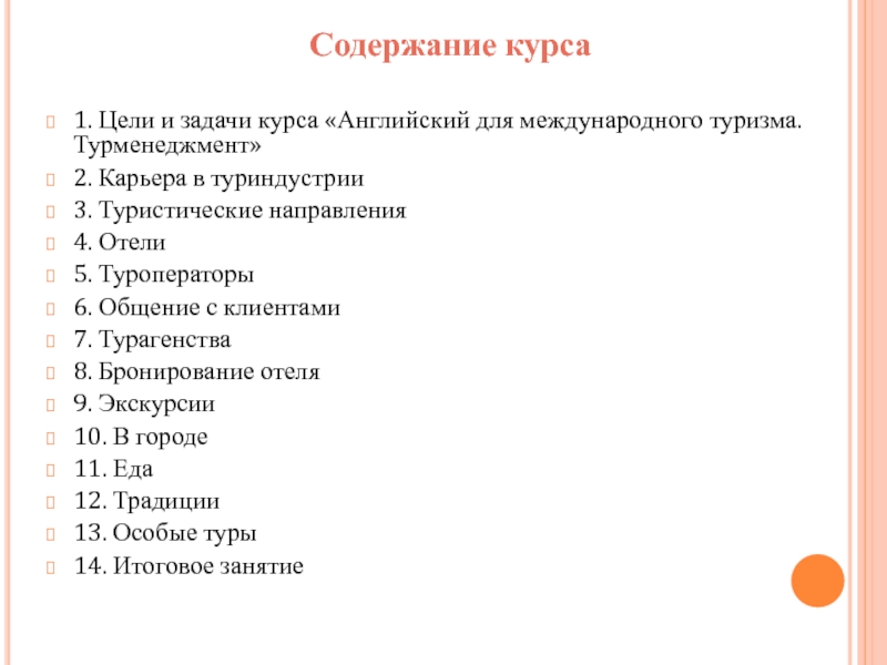 1. Цели и задачи курса «Английский для международного туризма. Турменеджмент»