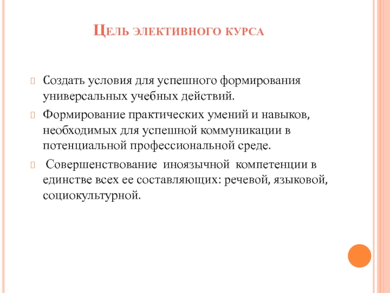 Совершенствование иноязычной компетенции в единстве всех ее составляющих: речевой, языковой, социокультурной.