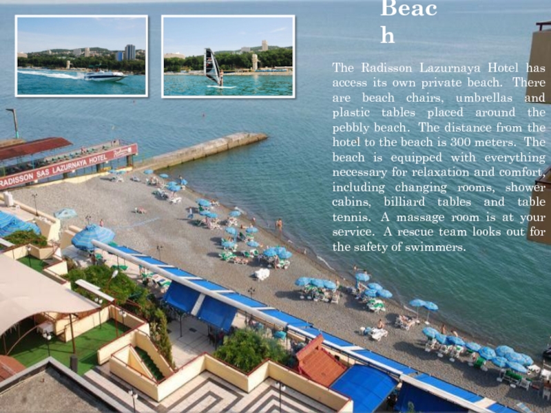 The Radisson Lazurnaya Hotel has access its own private beach. There