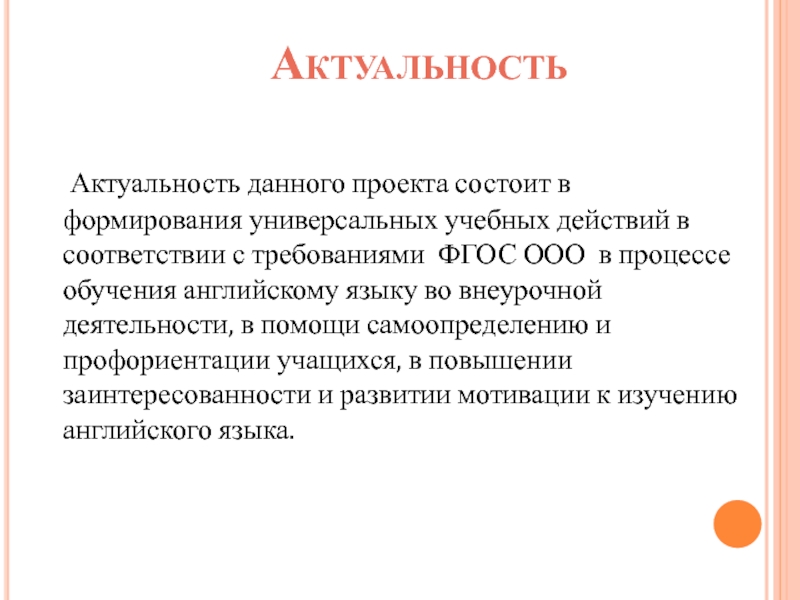 Актуальность данного проекта состоит в формирования универсальных учебных действий